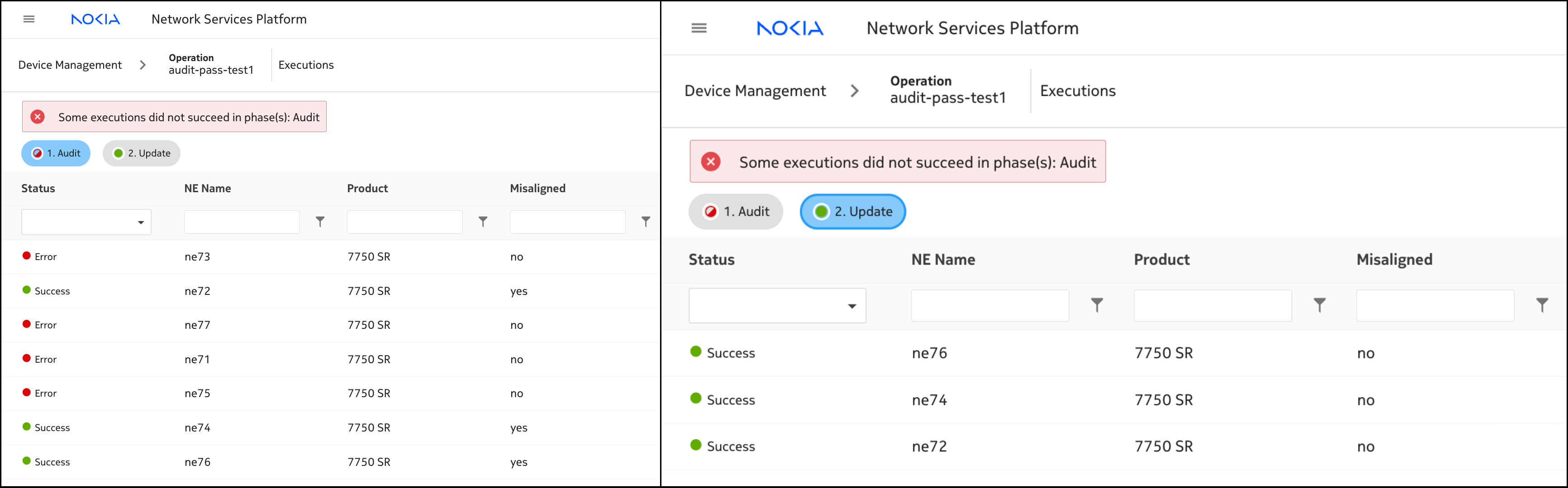 All Operations, then create a new operation by clicking the+ OPERATIONbutton in the top-right corner. - Execute the audit/realign operation on PE1 and PE2.